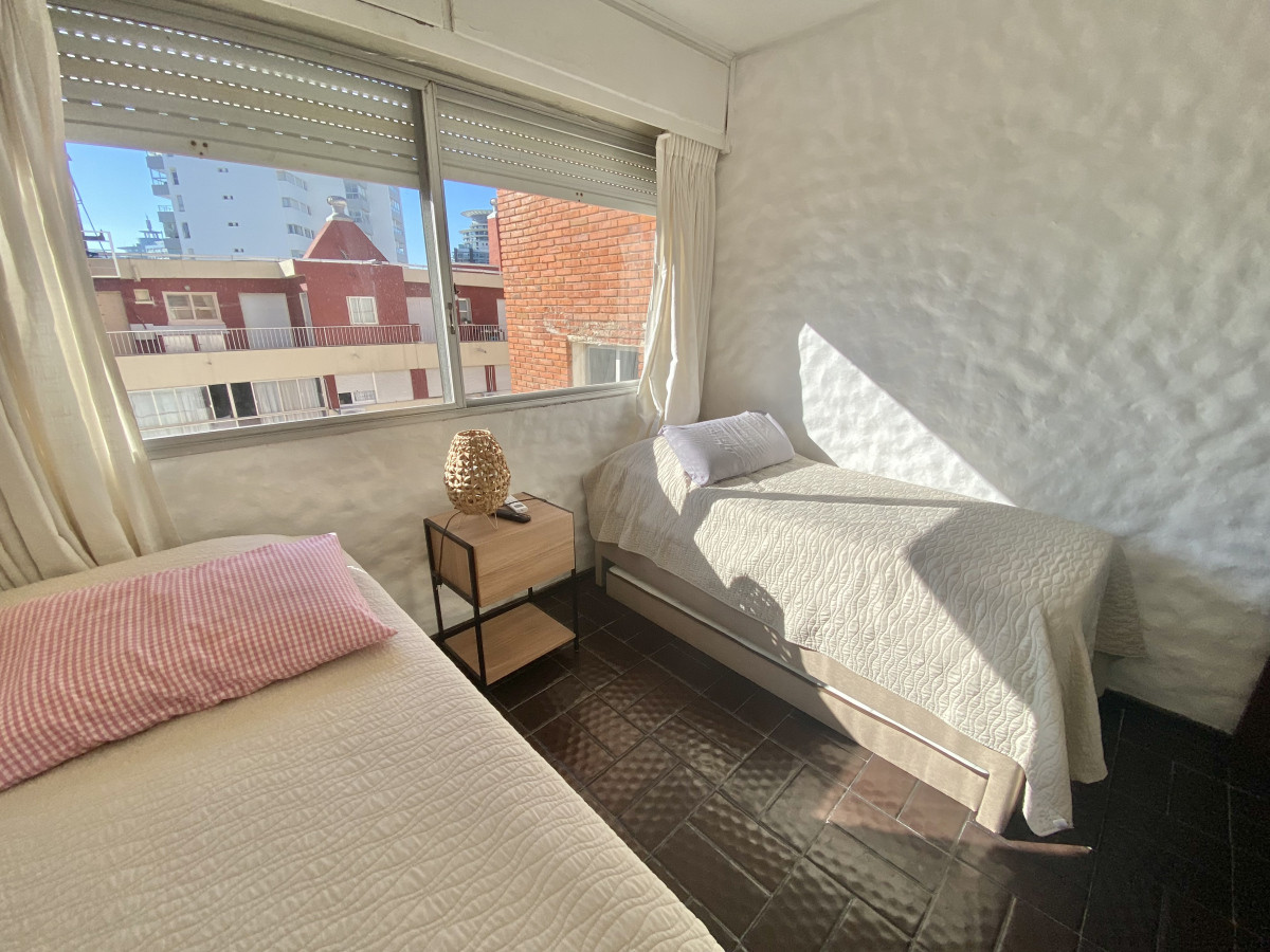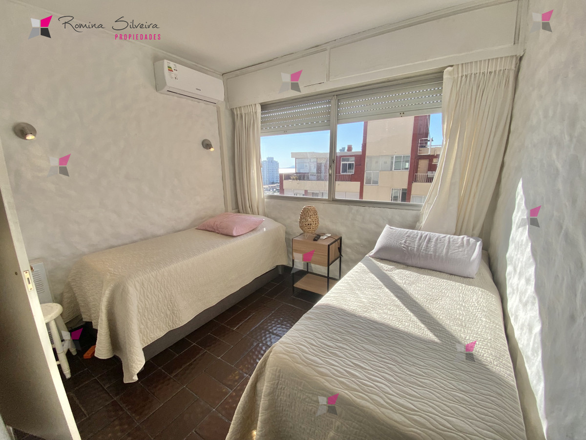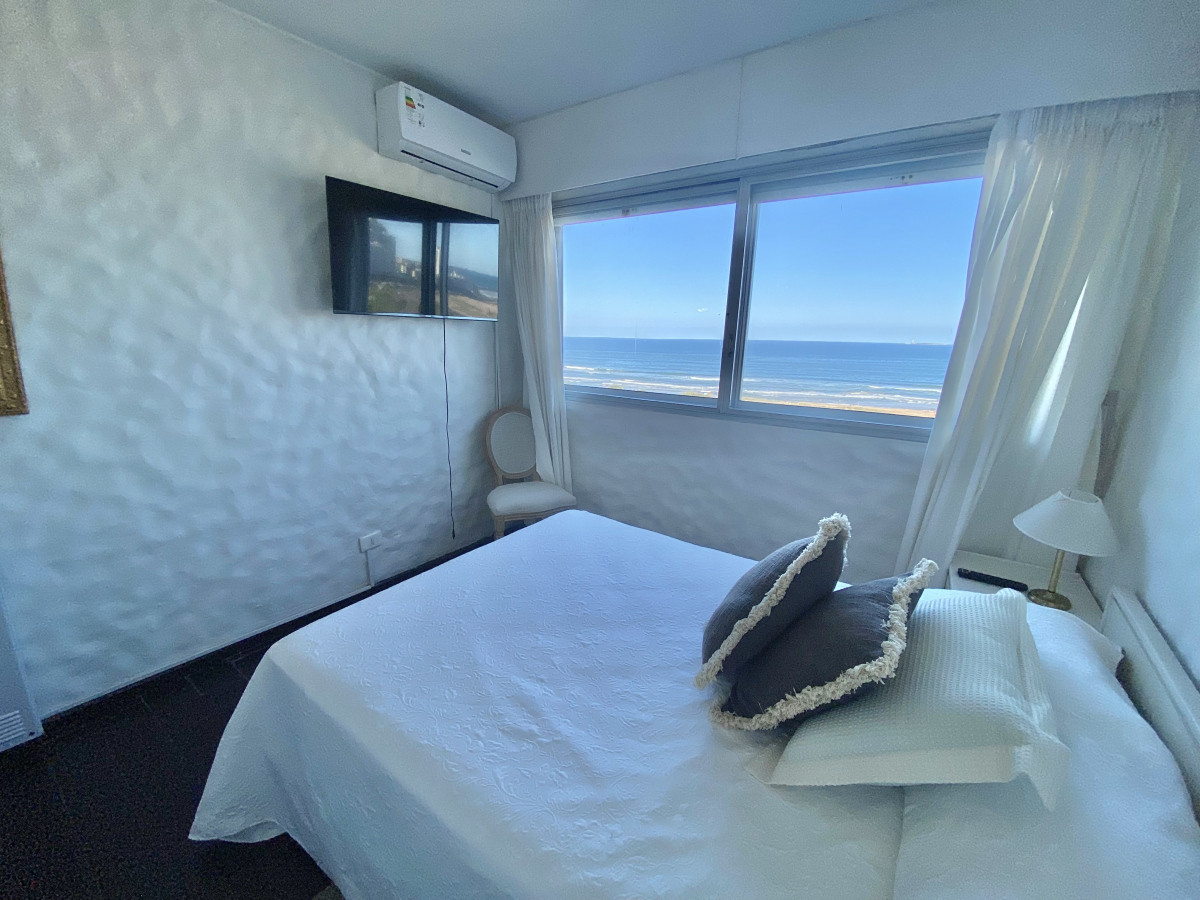 El dormitorio principal está orientado hacia Playa Brava, con excelente luz natural y vista al mar. El segundo dormitorio se ubica al contrafrente, con orientación hacia Playa Mansa y sol de tarde. Además, dispone de un espacio adicional que puede utilizarse como medio dormitorio, escritorio o área de guardado.