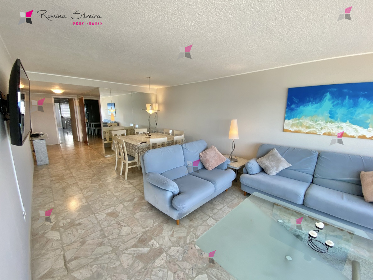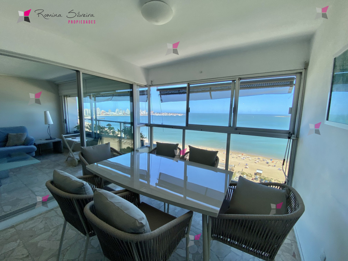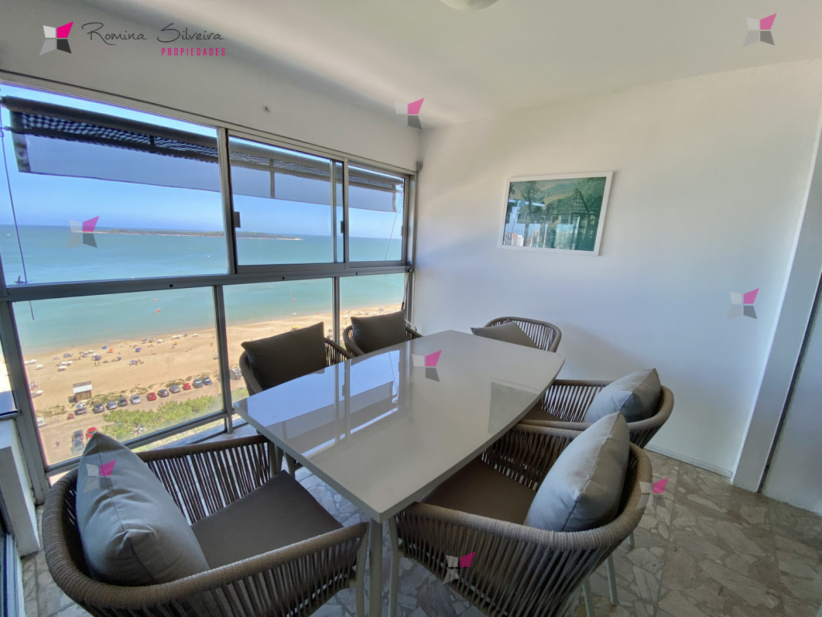 Apartamento en piso alto con muy buena vista al mar. Cuenta con 2 dormitorios en suite + dependencia de servicio y su baño, living comedor, balcon cerrado, cocina definida con area de lavadero, y garage.