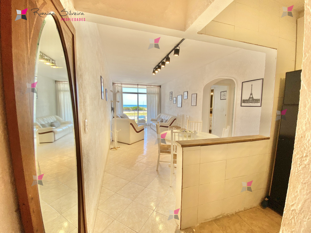 La unidad cuenta con 2 dormitorios con dos baños, uno de ellos en suites. Cocina integrada con living comedor y buena iluminación natural, un amplio balcon con vista directa al mar. Cochera sin techo.