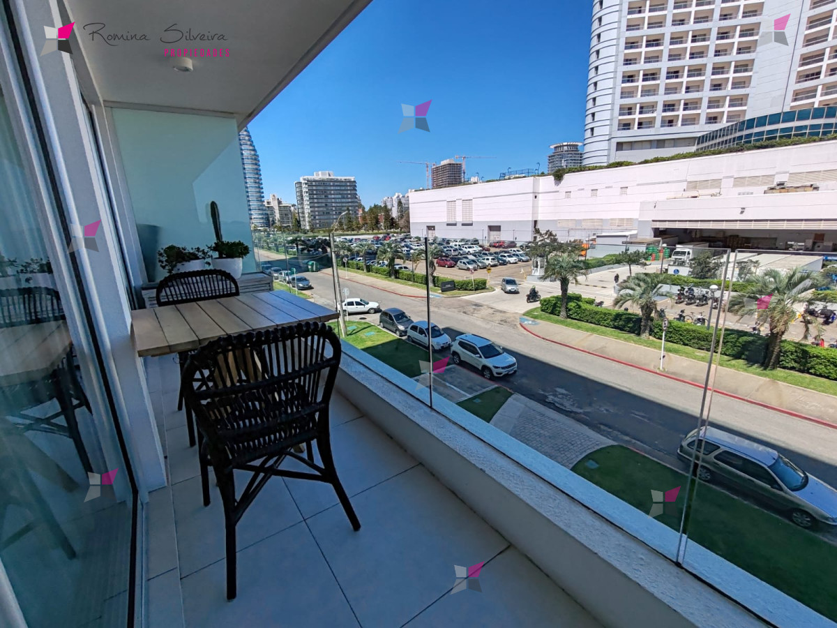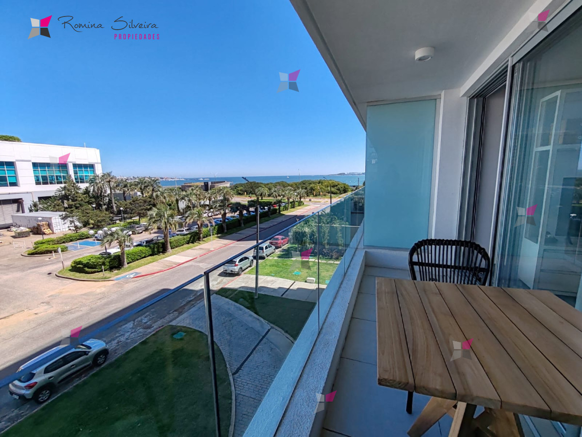Apartamento en alquiler temporal de 1 dormitorio con balcón y vista parcial al mar.