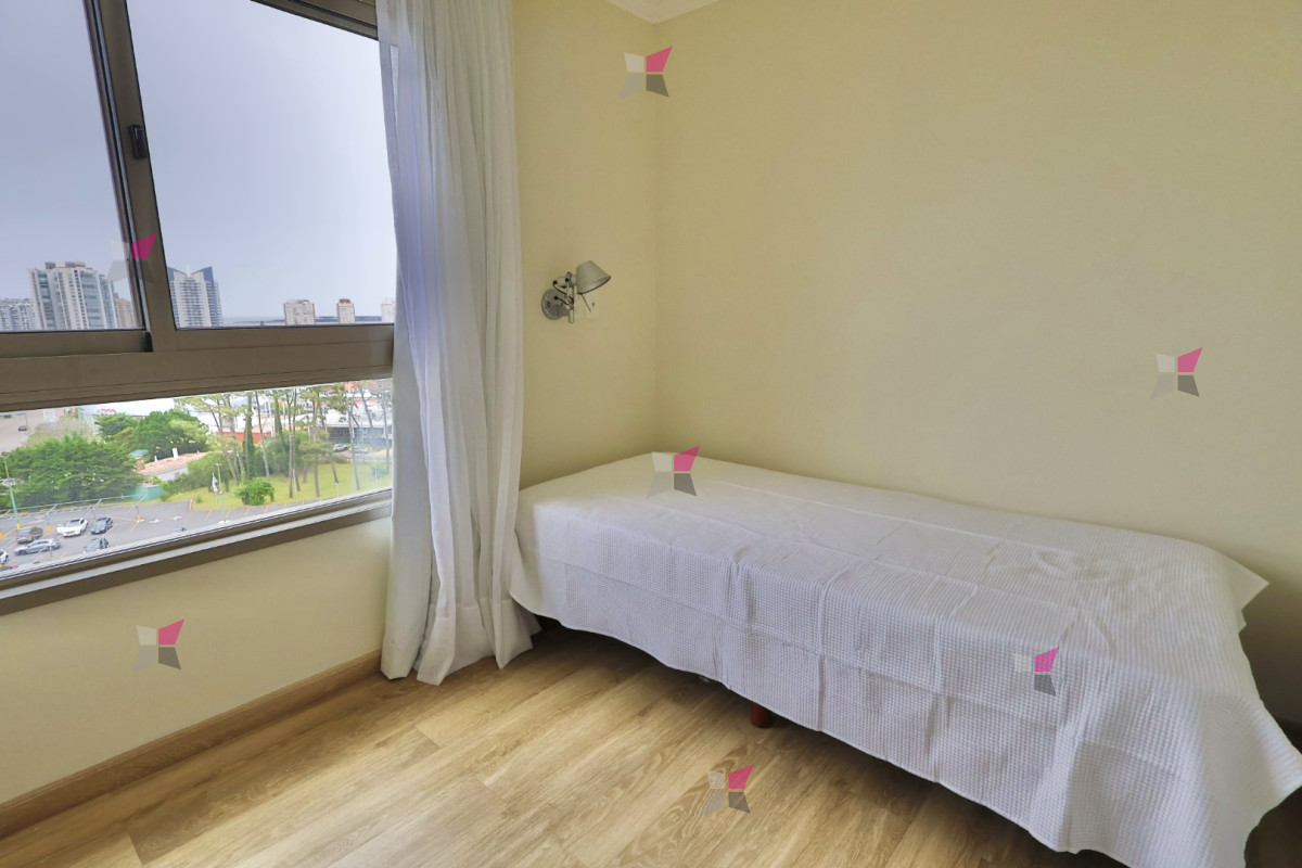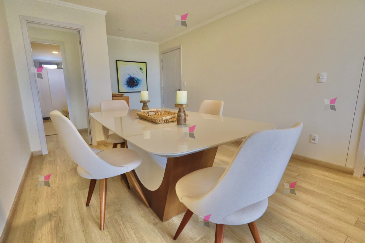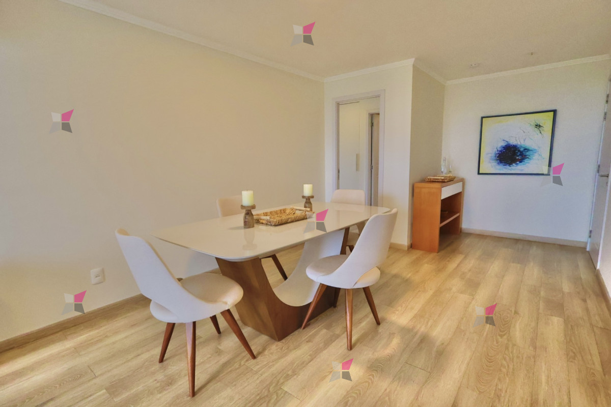 La unidad ofrece un living comedor amplio y luminoso, con salida a un balcón abierto orientado hacia Playa Brava. La cocina es definida y cuenta con lavadero. Dispone de tres dormitorios y dos baños, uno de ellos en suite, lo que lo hace cómodo y funcional para familias. También incluye garage en subsuelo para 1 auto.