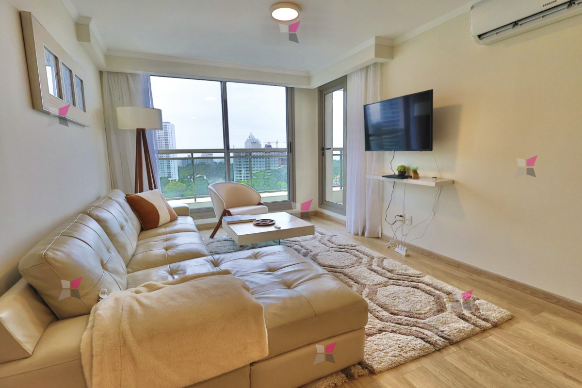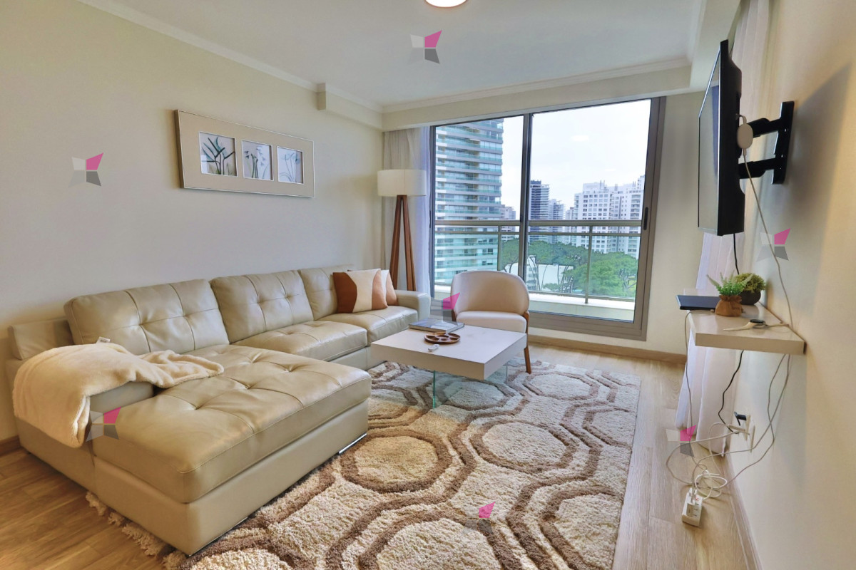 El edificio se destaca por su excelente propuesta de amenities: piscinas interior y exterior, microcine, gimnasio, sala de juegos, barbacoas, servicio de playa, servicio de mucama y recepción 24 hs.