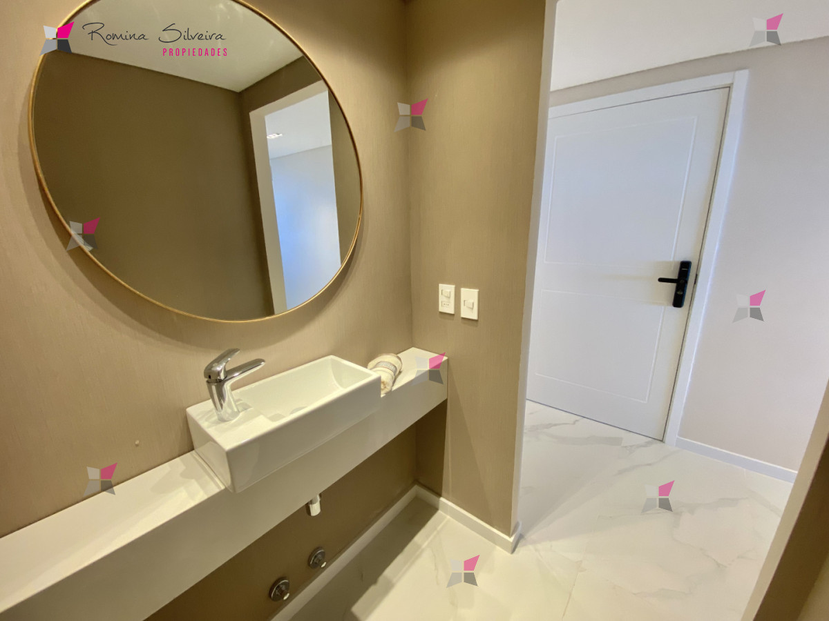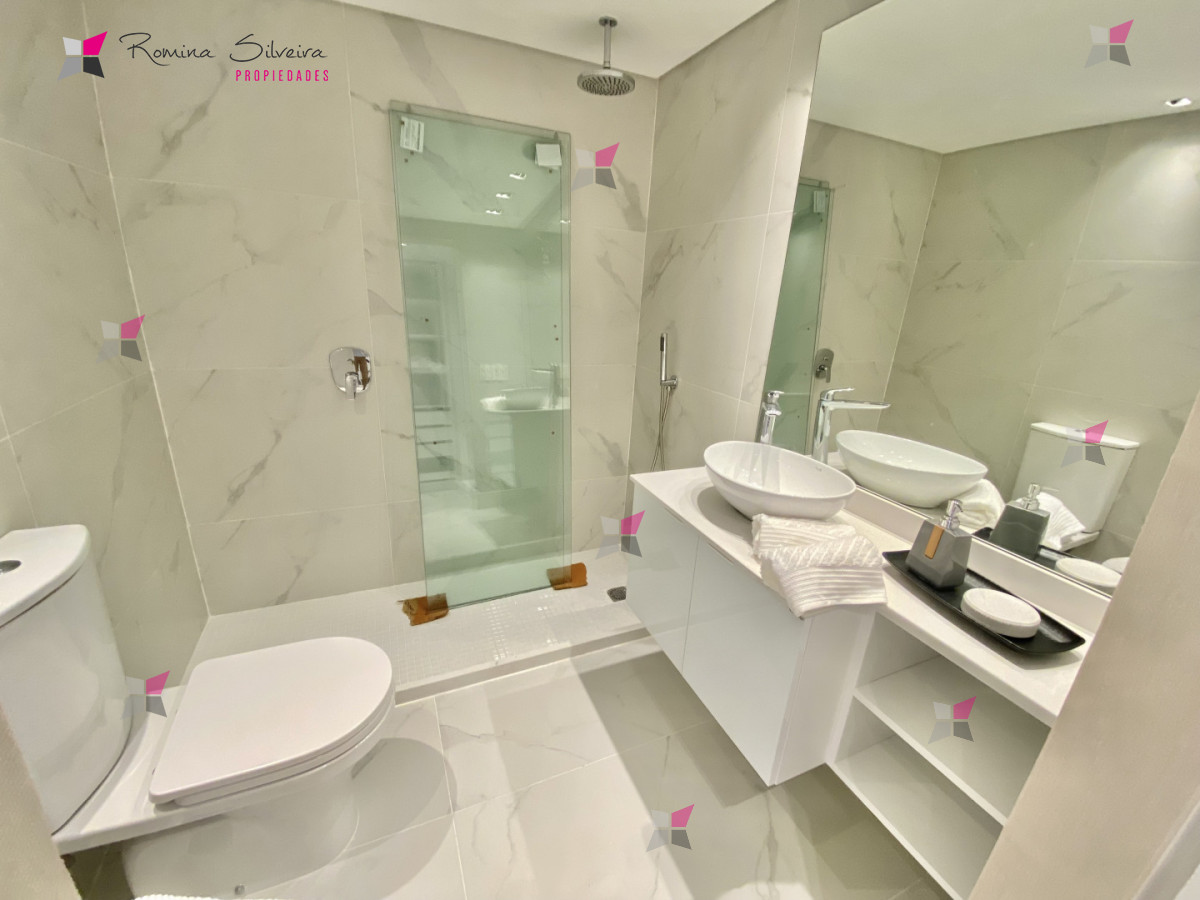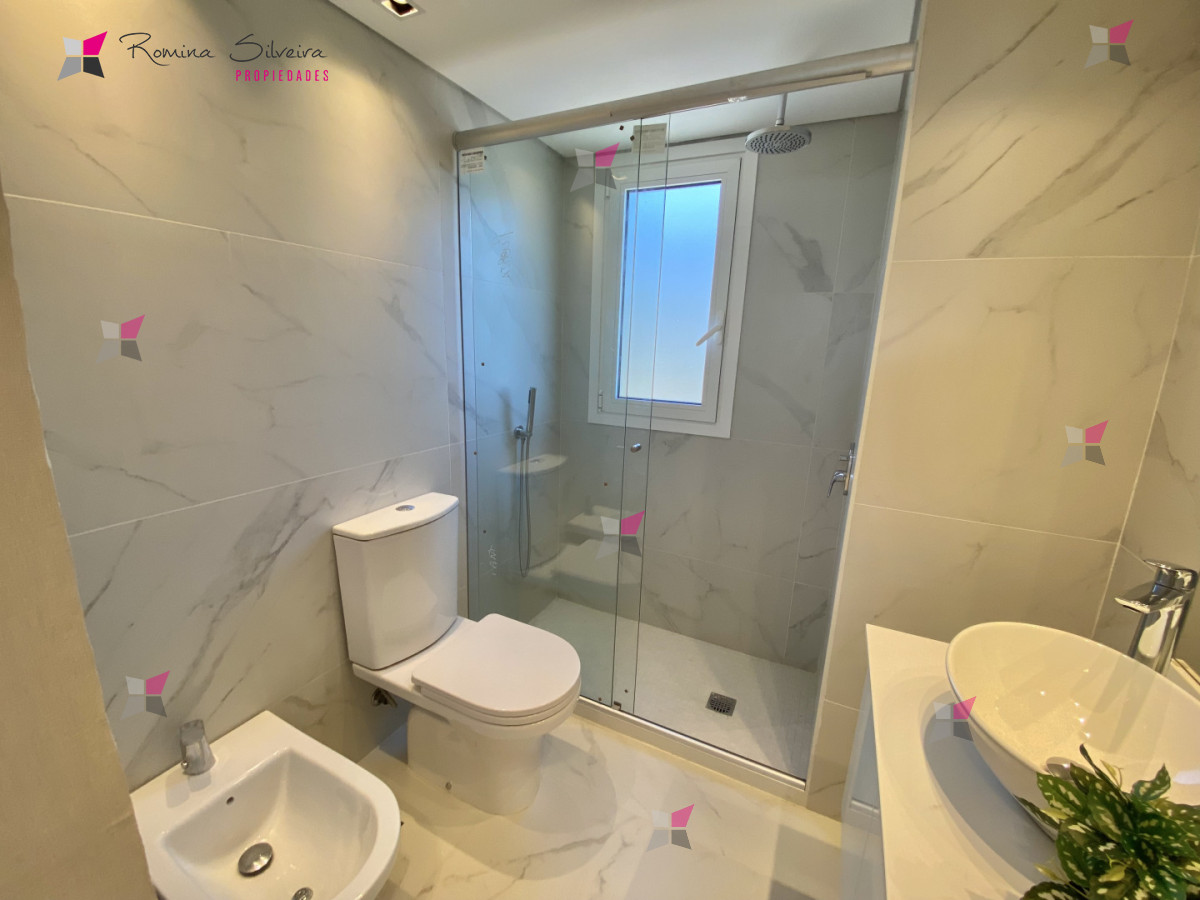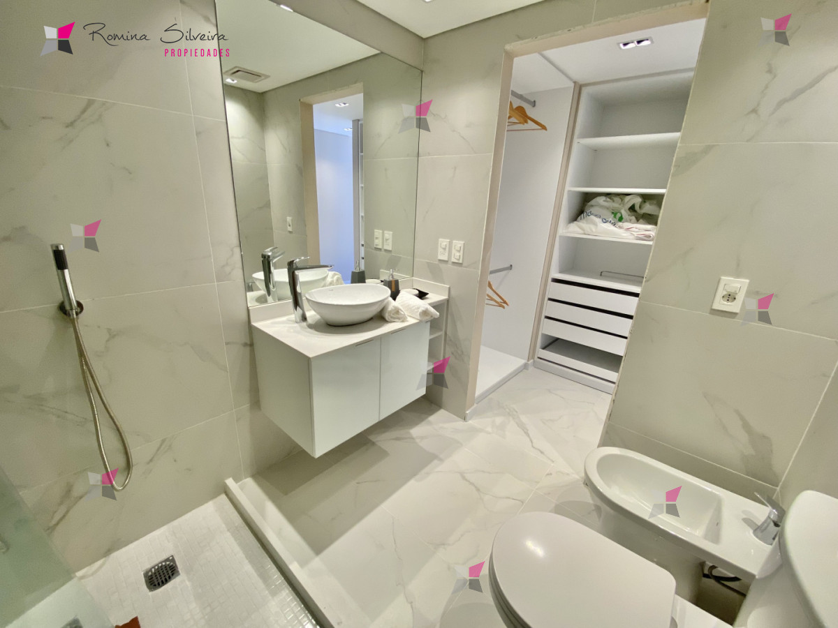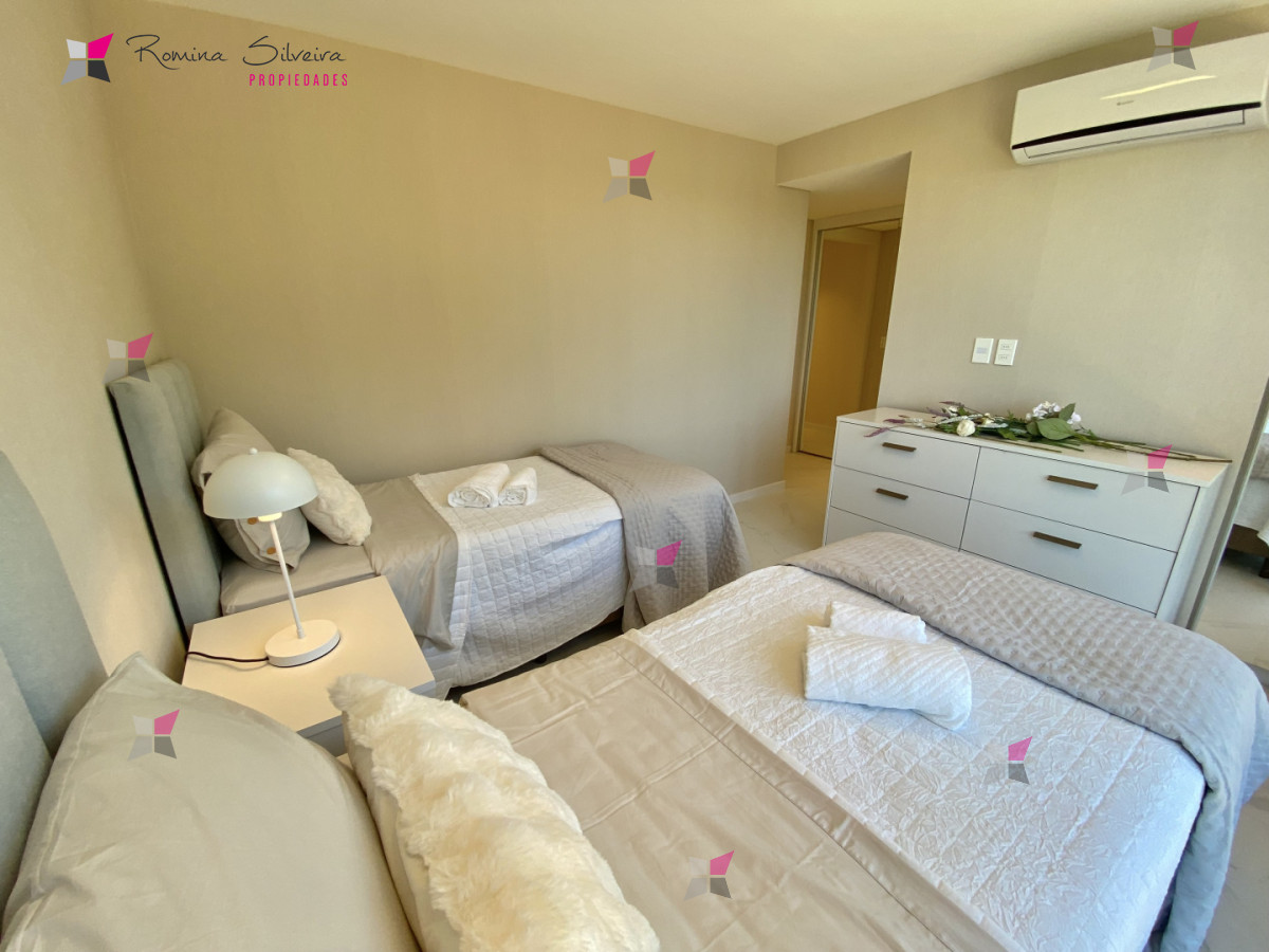El apartamento cuenta con living comedor y cocina integrada, con salida a amplia terraza con parrillero. Desde el balcón se disfrutan vistas abiertas al mar y a la laguna.