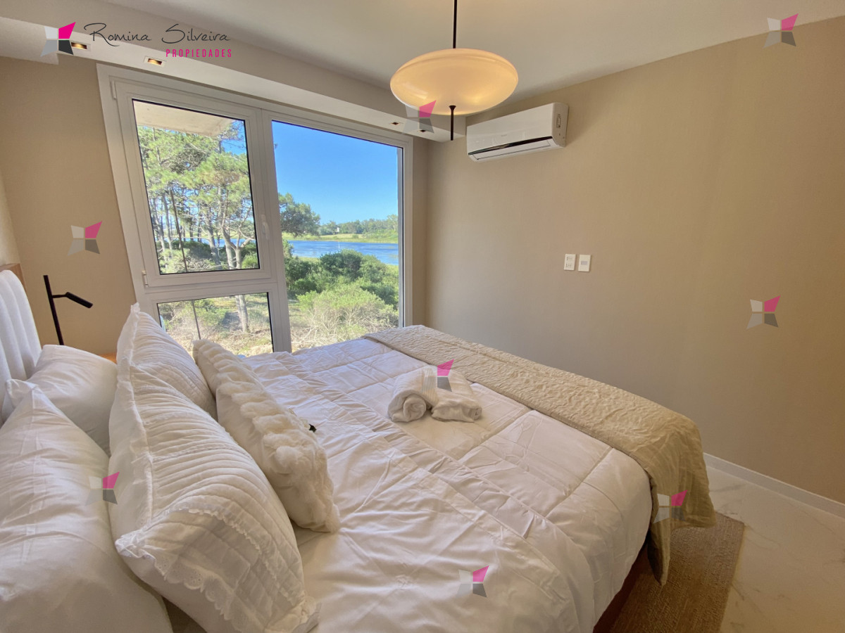 Dispone de dos dormitorios en suite, ambos con vistas a la laguna, y toilette de recepción.