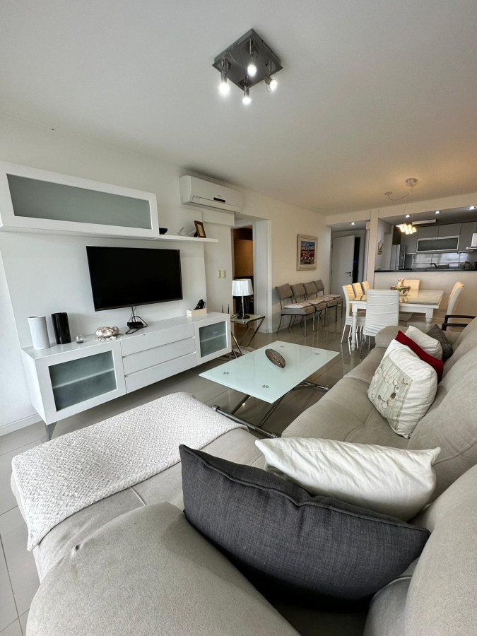 Venta y alquiler de apartamento temporal de 2 Dormitorios en Playa Brava. living comedor, cocina, 2 baños, terraza, toilette y garaje en sub-suelo.