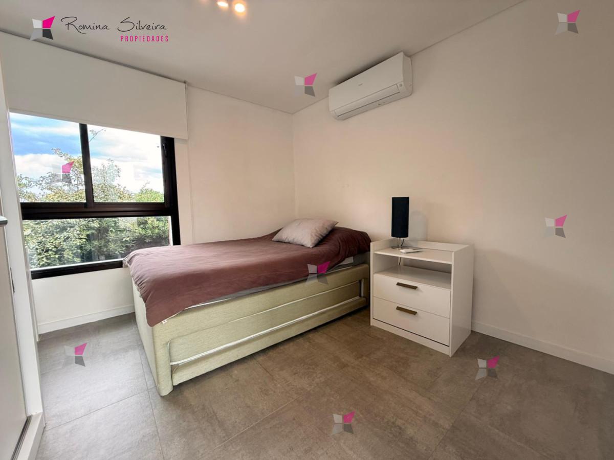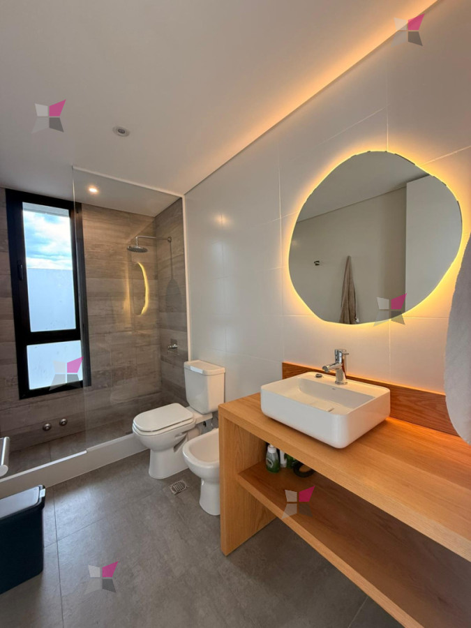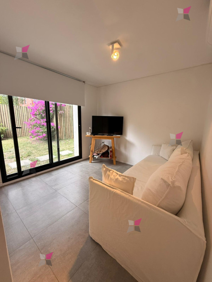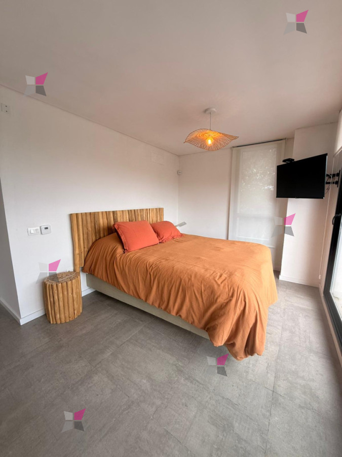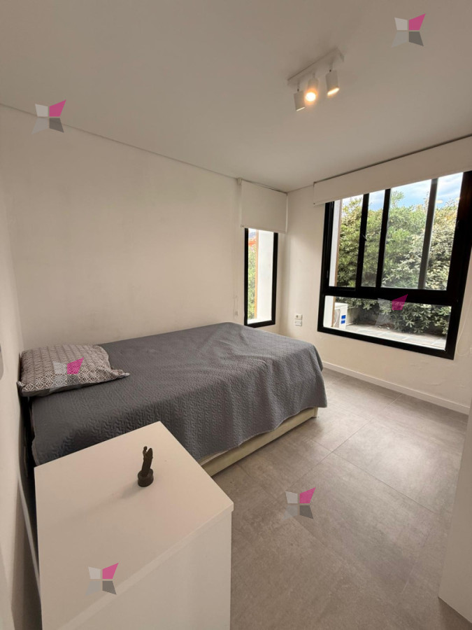 En la planta baja, se accede a un amplio living comedor con cocina integrada, sutilmente delimitada por una barra. Los grandes ventanales permiten una fluida integración entre el interior y el exterior, aportando excelente luz natural. En este nivel se encuentra además un dormitorio y un baño completo.
